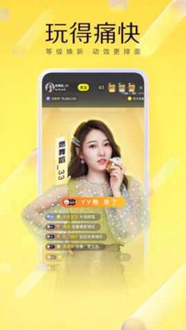 YY直播是一款特别受欢迎的影视直播软件,这里面有最全的视频资源,还有众多明星都在这里进行直播,都可以和你进行零距离的互动交流,特别好用,整体的页面设置的非常精美,安装包特别小,不占内存。并且进入直播间后还可以在APP上点击启动游戏按钮,可以边看直播边玩游戏。