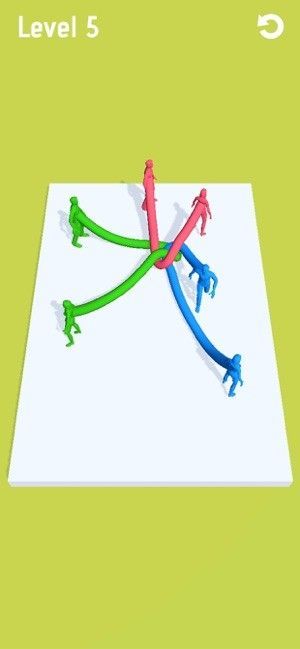 简单的游戏但是却很容易让人着迷,需要玩家把画面中所有打结的绳子全部解开,刚开始的时候很简单,随着关卡的增加游戏也是一关比一关难,有的时候真的会让人抓狂到不行,闯一关还是比较费时间的。