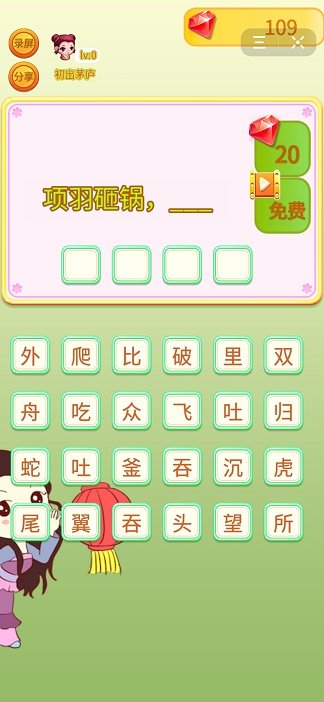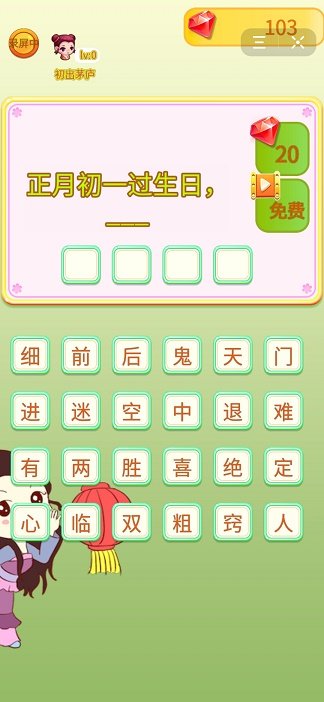游戏画面干净简洁,根据画面中的问题来回答下半句话就可以了,当然会有很多字是用来扰乱你的,让玩家一边娱乐一边学习,如果觉得太难还可以使用道具哦,你还在等什么?