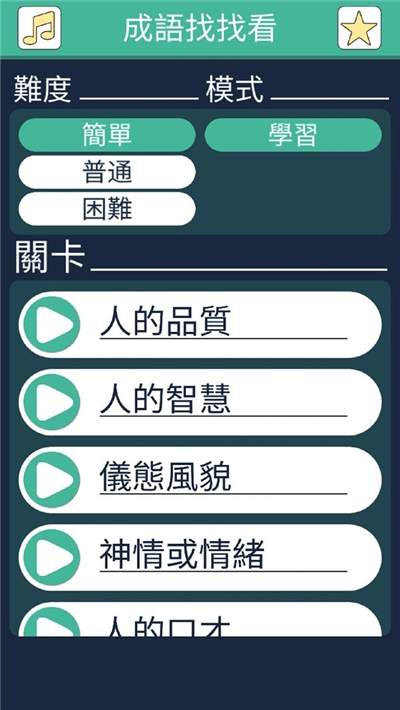 2、在游戏中寻找有三个难点的成语,可以控制版面的大小。