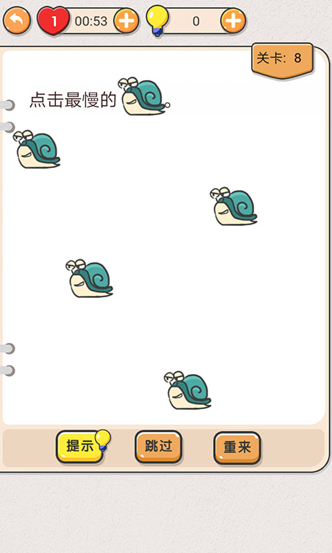 简单的游戏画面让人一目了然,没有多余的东西,问题也都是很基本的不会很难,但是当闯关到一定阶段时难度逐渐增加,在你回答问题的时候还有时间限制,所以基本思考的时间非常短,往往第一反应就是正确答案。