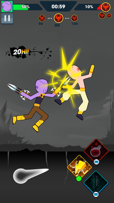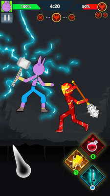 火柴人英雄大乱斗这款游戏的画风非常的魔性,这里有大量的火柴人角色可以供玩家使用,每个火柴人都有不同的技能,你需要通过不断的战斗来提升自己的实力,你还可以通过战斗来解锁新的火柴人角色,升级自己的装备,让自己变得更强。
