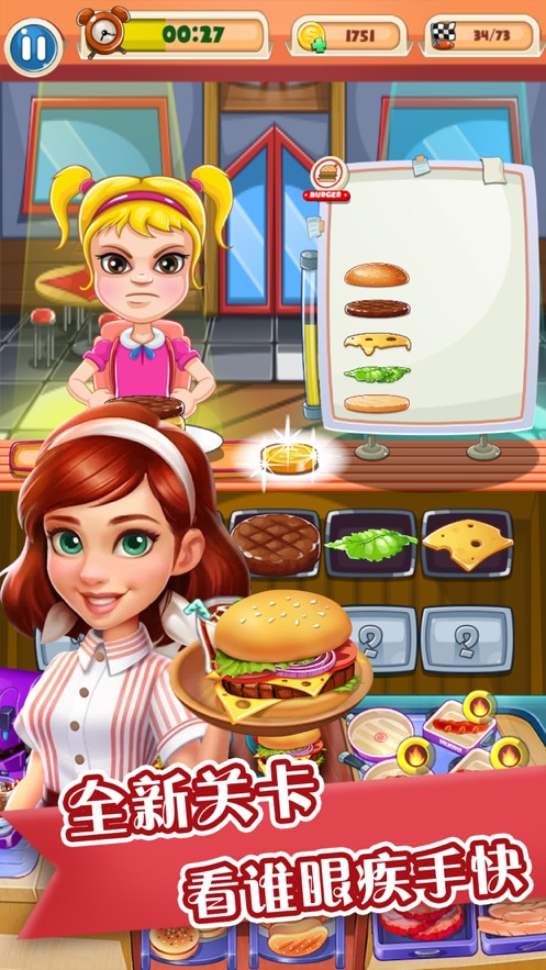 汉堡仍是这个餐饮行业最受欢迎的食物,因为它口味香浓,深深的吸引着大家,所以你在这游戏中你要经营好这家汉堡店,它能给你带来意想不到的财富,多重花样的任务,会让你解锁更多美食哦。