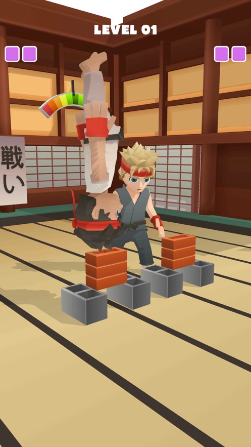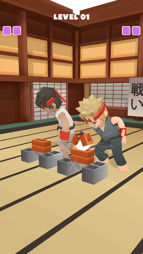 一款解压的休闲游戏,玩家是一名跆拳道高手,由于自己太过强大,没有同行愿意陪练,孤独的你只好自己破坏一些木板,或者用头来击碎木板,对自己都是一种磨练,想要更强的你,要坚持不懈的走下去。