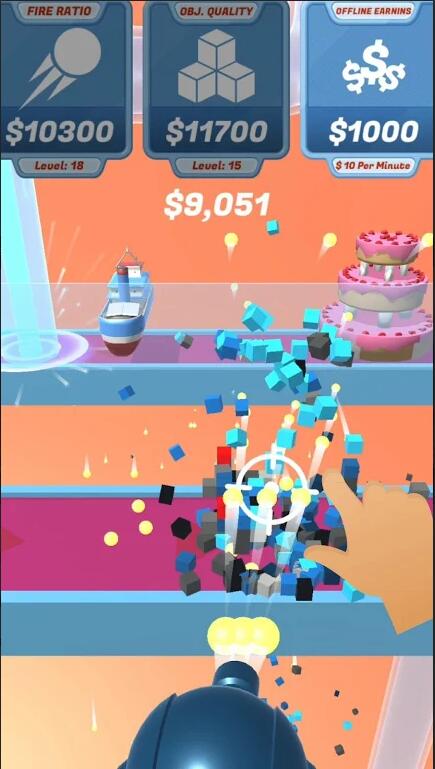 3.丰富关卡挑战和升级,并使用金币来升级子弹到更强大的属性和能力。