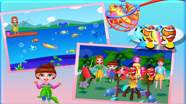 2.和父母去海滩钓鱼。这里有各种水生生物,学习一些相关知识。