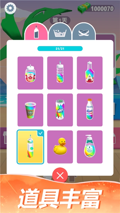 在这款游戏中用的是色彩非常丰富的界面以及道具,而且这款游戏整体改编自现实生活中的扎染工艺,让你即使不去到扎染工地也可以在线的感受到展览艺术带给大家的快乐。