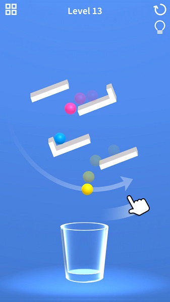 三个球球,这个游戏比较考验玩家的逻辑思维能力,你需要想办法让三个小球进入一个杯子里,这并不是一件容易的事情,因为小球的滚动性也是非常强的。游戏的整个画面都是非常简洁非常精致的游戏中有非常多的关卡,等待着你的不断挑战。当然游戏的难度也会越来越大的,相信你一定可以战胜它的。