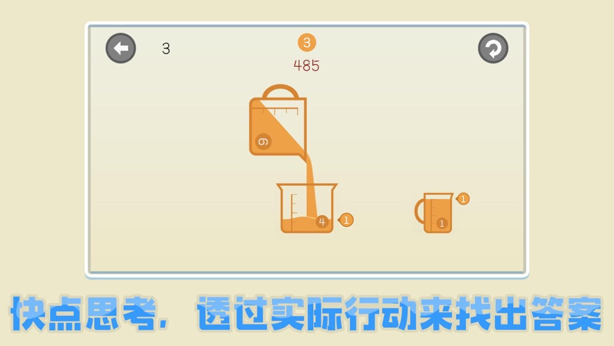 3.玩家自己需要一个有趣的实验,看你能不能把桌子上的水杯倒到指定的水位。