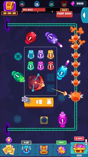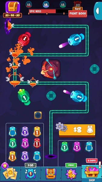 3.收集所有类型的炮塔来帮助你赢,并形成战斗编队基于他们的属性来增加兴奋。