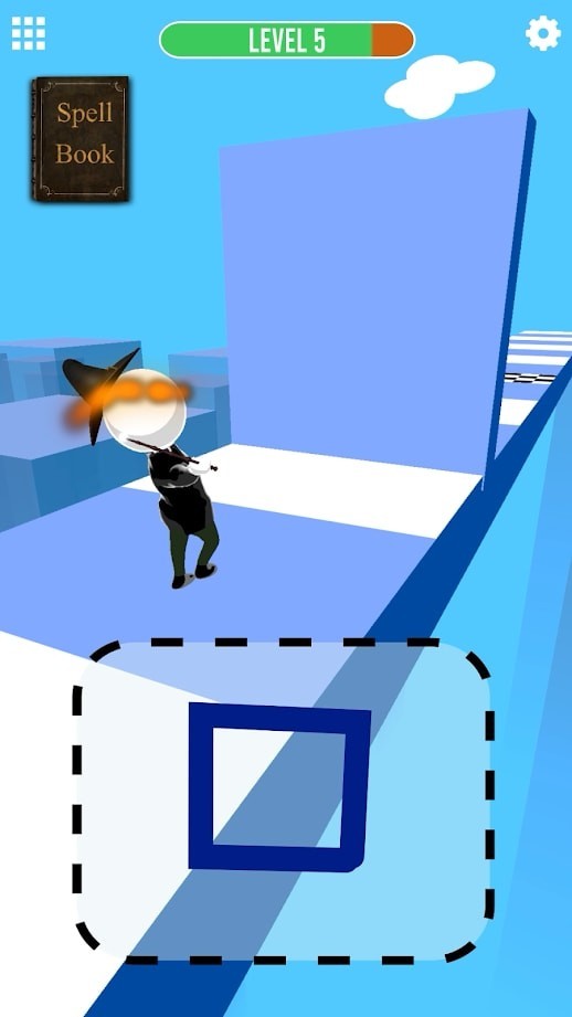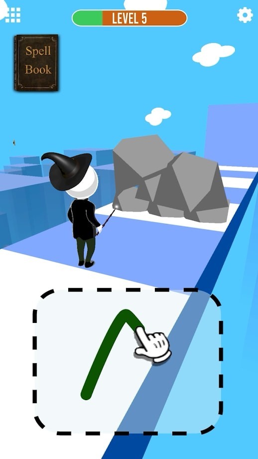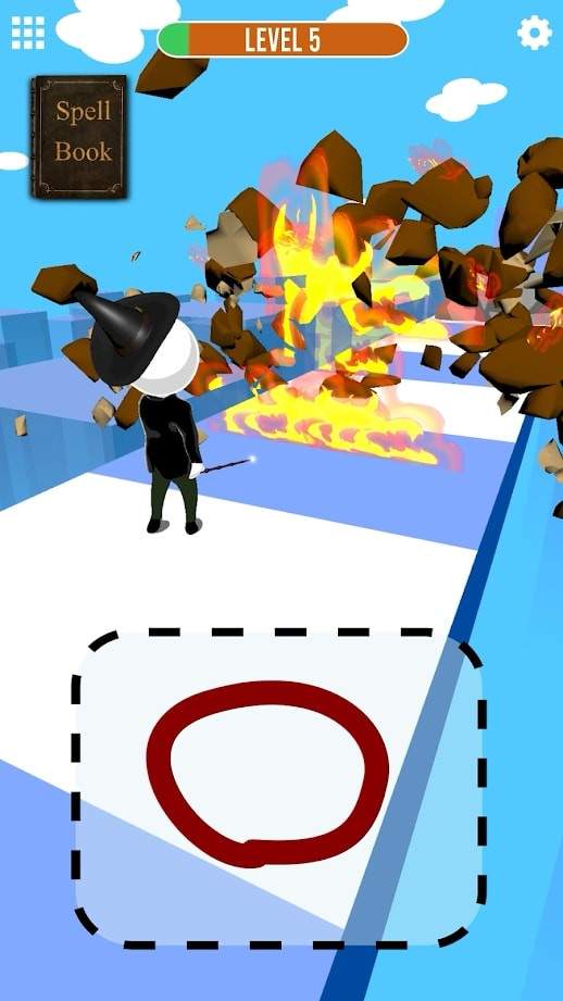 1.玩家可以在下面的画板上涂鸦,画出咒语,突破面前的障碍,顺利前进。