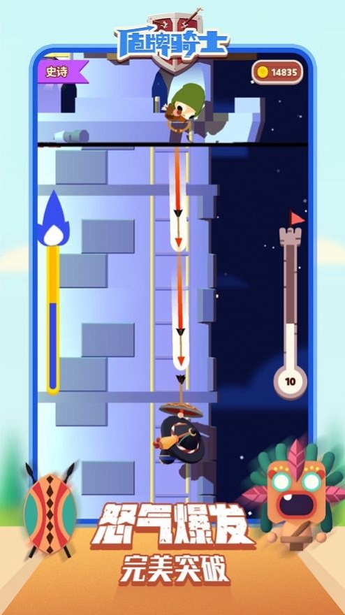 盾牌骑士兵临城下勇闯箭塔这是一款采取了超级趣味性的卡通风格的休闲游戏,在这款游戏当中,你的武器就有自己的手中的剑和盾,用他们来打败敌人。利用自己手中的武器充分发挥他的优势,抵挡敌人一波波进攻,同时尽可能的攻击城墙,成功的登上城墙即可算游戏通关,同时在游戏当中还埋有很多的彩蛋等待玩家亲自来发现。