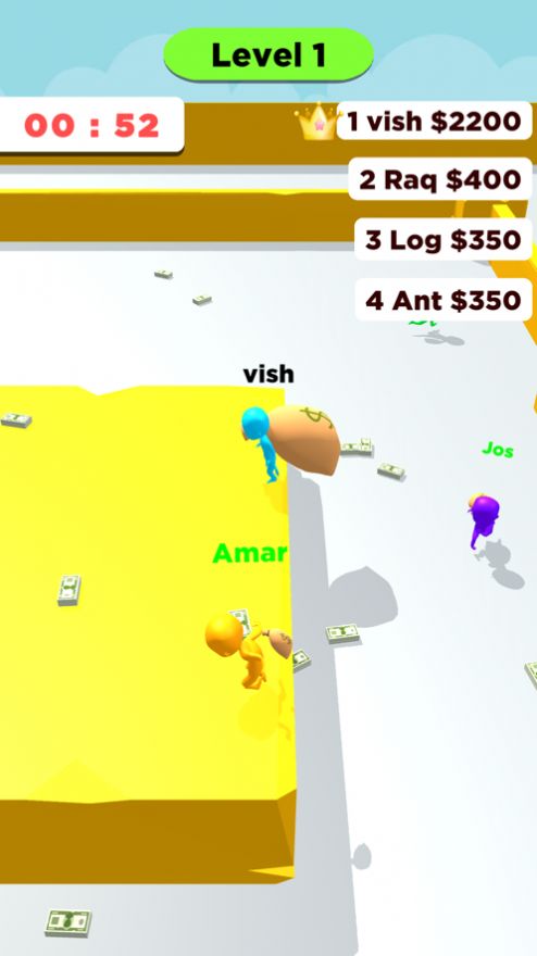 1.快乐偷钱触手可及。许多玩家开始在竞技场上竞争,灵活滑动以收集更多的钱,并加强自己以击败你的对手。
