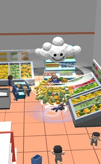3.在这个有趣的动作游戏中,你需要将购物中心里所有的人物和物体碰撞成碎片状的云。