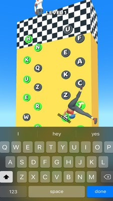 字母攀登大师3D这个也是比较考验玩家的反应能力和手速,只要你的速度足够快,你就是这款游戏的王者。因为现在整个画风都是比较小清新的,游戏的场景也是非常多变的,在这里你永远都不会觉得无聊。你需要根据游戏给出的字母迅速找到相应的字母,你才能够不断的向上攀爬。