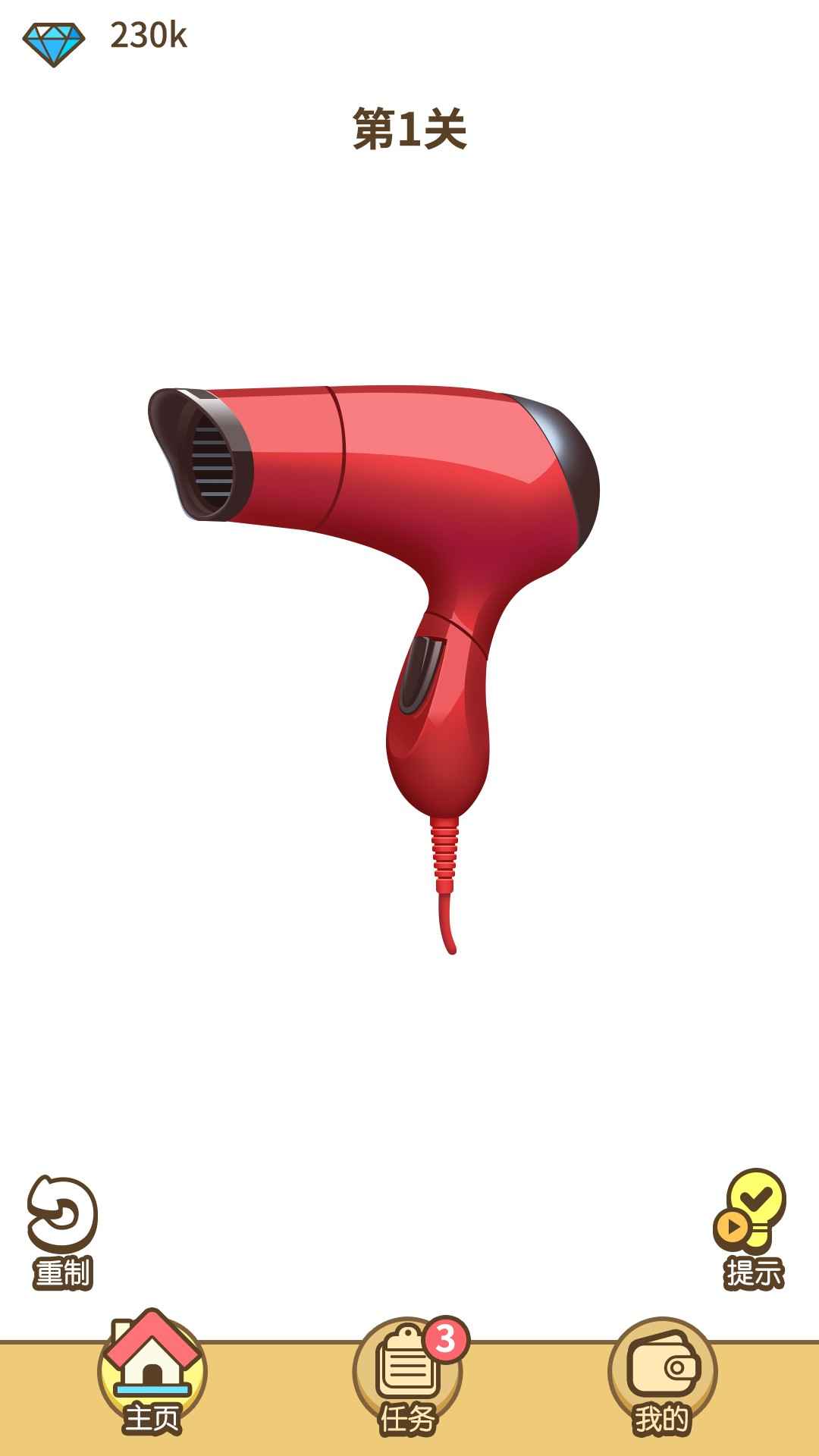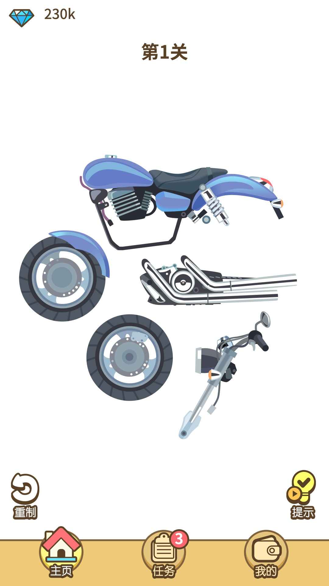 2.游戏以图片的形式,通过模型展示生活中常用的工具,玩家组装各种零件。